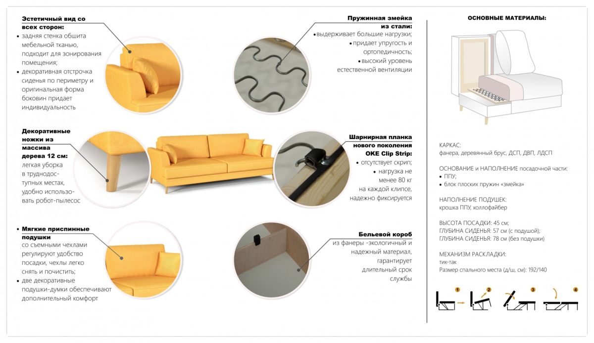 Механизм трансформации: в спальное место с матрасом из ППУ на пружинной змейке.