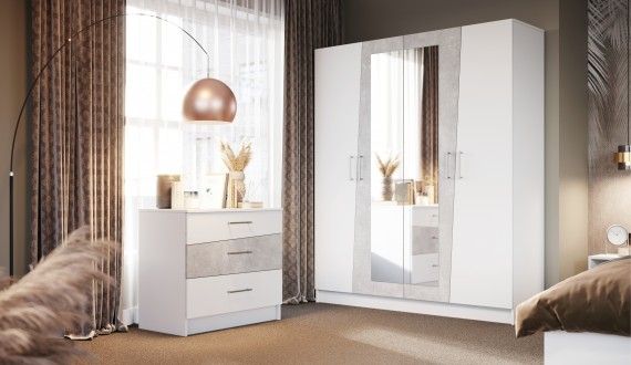 Вместительный комод Антария из ЛДСП с асимметричными скошенными линиями фасадов вносит свободу и движение в жилое пространство, делает интерьер более сложным и необычным. Нейтральные цвета декора универсальны для любого стиля интерьера. Три выдвижных ящика на роликовых направляющих поместят в себя одежду, личные вещи и аксессуары. Верхнюю крышку можно использовать для декора или фотографий. В спальне он легко превращается в туалетный столик, достаточно повесить над ним зеркало.