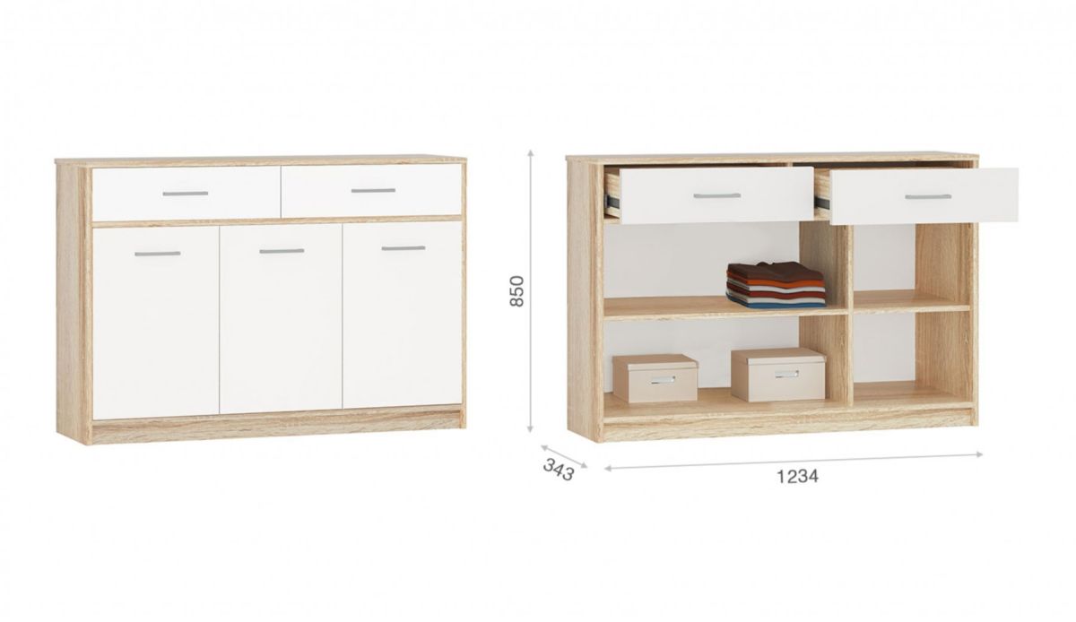 Комод «Стелс» 3д. 2ящ. Дуб сонома/белый