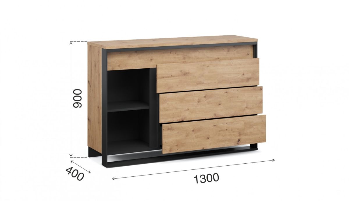 Комбинированный комод «Тринити» 1д3ящ — это максимально функциональное решение для современного интерьера. Удачное сочетание открытой полки, вместительных ящиков и стильного дизайна позволяет организовать хранение любых вещей, сохраняя ощущение простора и порядка.