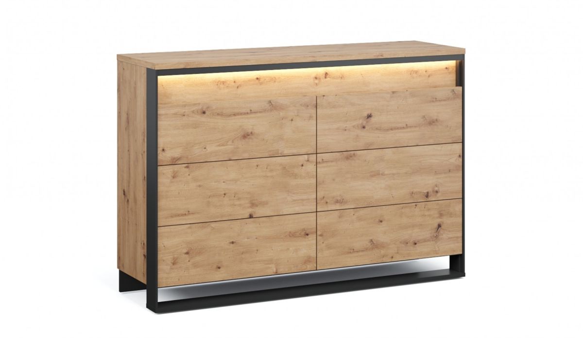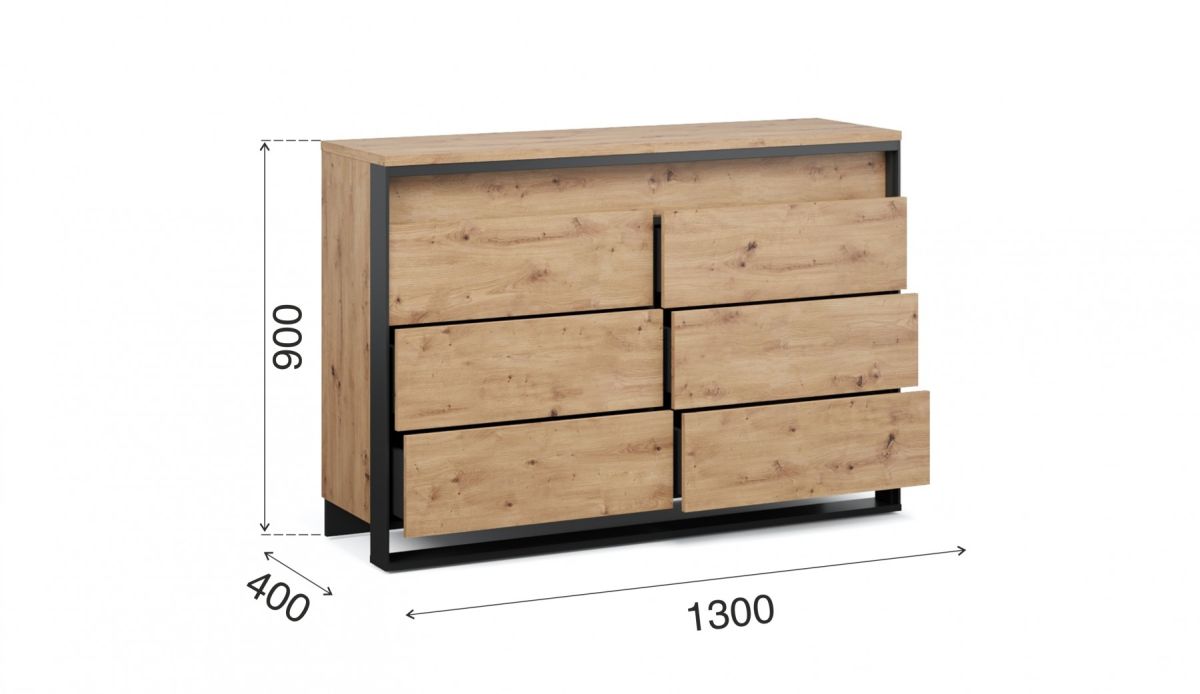 Комод Тринити с 6 ящиками Дуб Онтарио/Черный