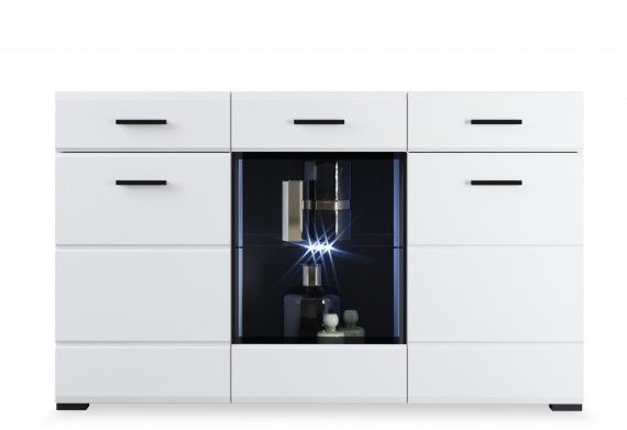 Комод Йорк привлекает внимание своим элегантным дизайном. Горизонтальная фрезеровка фасадов, контрастные черные ручки и задняя стенка из ХДФ создают уникальный и современный вид. Белый цвет комода идеально впишется в любой интерьер, а глянцевые фасады High Gloss из МДФ наполнят вашу комнату светом и сделают ее более просторной. Купить белый комод с таким дизайном — значит добавить в ваш интерьер стиль и элегантность.