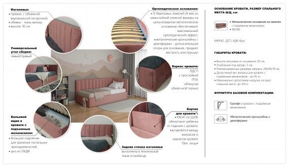 Кроме того, углы кровати сглажены, а мягкие боковины и корпус исключают возможность получения травмы. Благодаря этому, пространство гармонизируется.