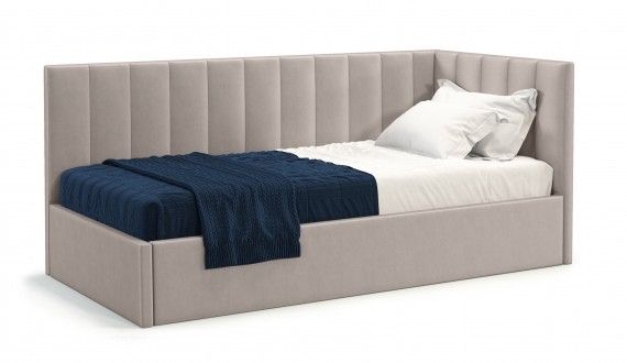 Мягкая кровать в минималистичном стиле идеально подойдёт для детской или подростковой комнаты. Её дизайн подчёркивает геометричность модели благодаря вертикальной прострочке с углублениями по периметру спинки и изголовья. Это создаёт атмосферу уюта и способствует спокойному отдыху.