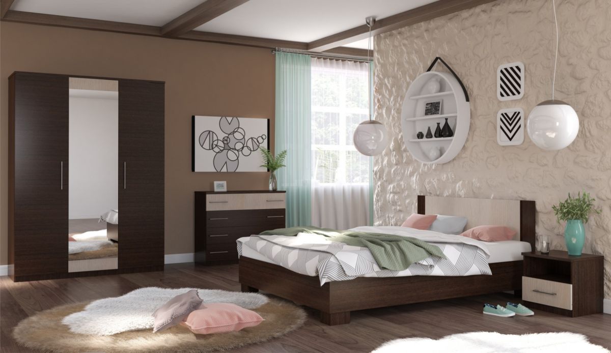 Кровать «Аврора» 140*200 (основание ЛДСП) Венге/дуб молочный