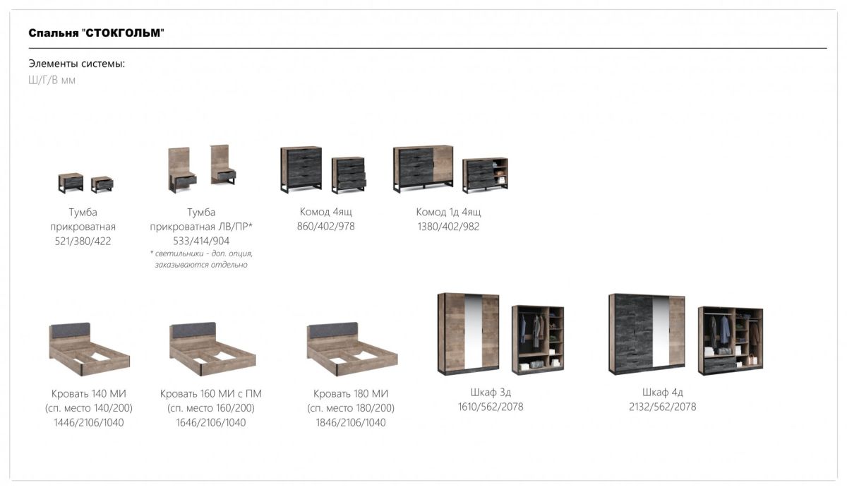 Кровать «Стокгольм» 140 без ламелей Дуб гранж песочный