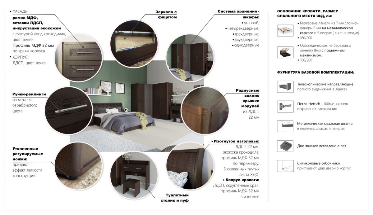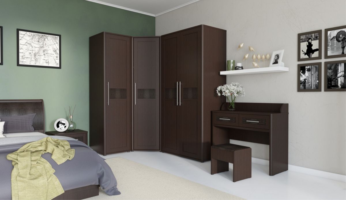 Шкаф Токио - универсальное решение для хранения вещей, яркий представитель японского стиля: простая геометрия, лаконичная изысканность форм, благородный цвет венге. Легкие фасады с рамкой МДФ 22мм декорированы вставками экокожи крокодила. Скругленный профиль из МДФ 32мм по вертикальным краям корпуса закрывает острые края и придает шкафу более эффектный и надежной вид. Верхняя радиусная крышка модуля 22мм - мебель прочнее и долговечнее, выглядит как из массива дерева. Металлические рейлинговые ручки подчеркивают природную красоту цвета и текстуры фасадов. Система шкафов Токио позволяет собирать прямые и угловые шкафы любой протяженности. Идеально компонуется со всеми модулями системы Токио.