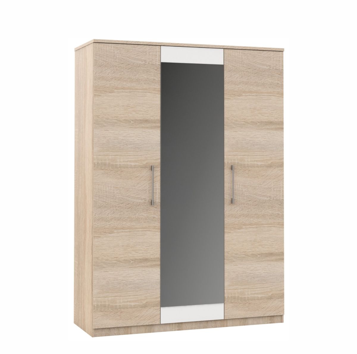 Трехдверный шкаф «Аврора» в цвете Сонома/белый — это идеальное решение для вашей спальни или прихожей. Классический распашной дизайн в стиле минимализм с зеркальным фасадом создаст атмосферу легкости, порядка и визуально расширит пространство.