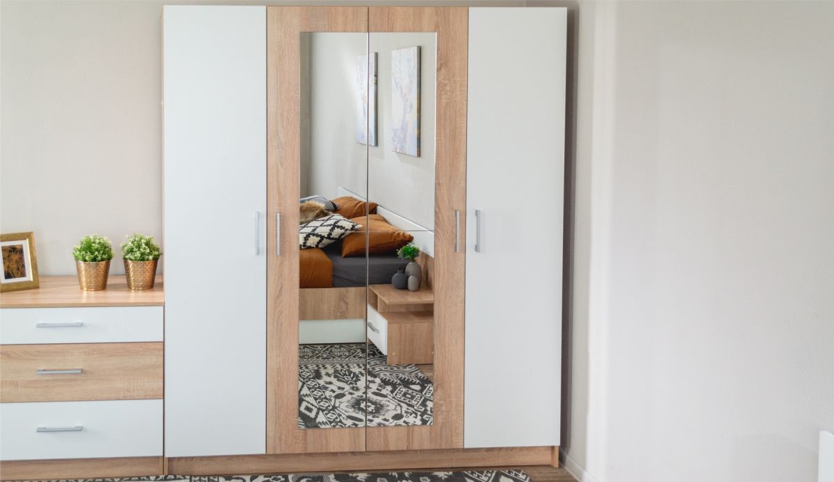 Шкаф «Алена» 4дв с зеркалами Дуб сонома/белый