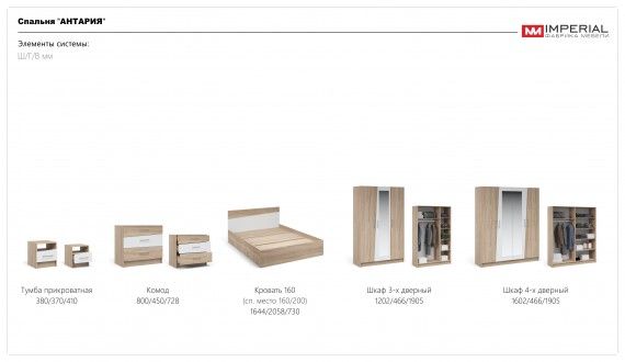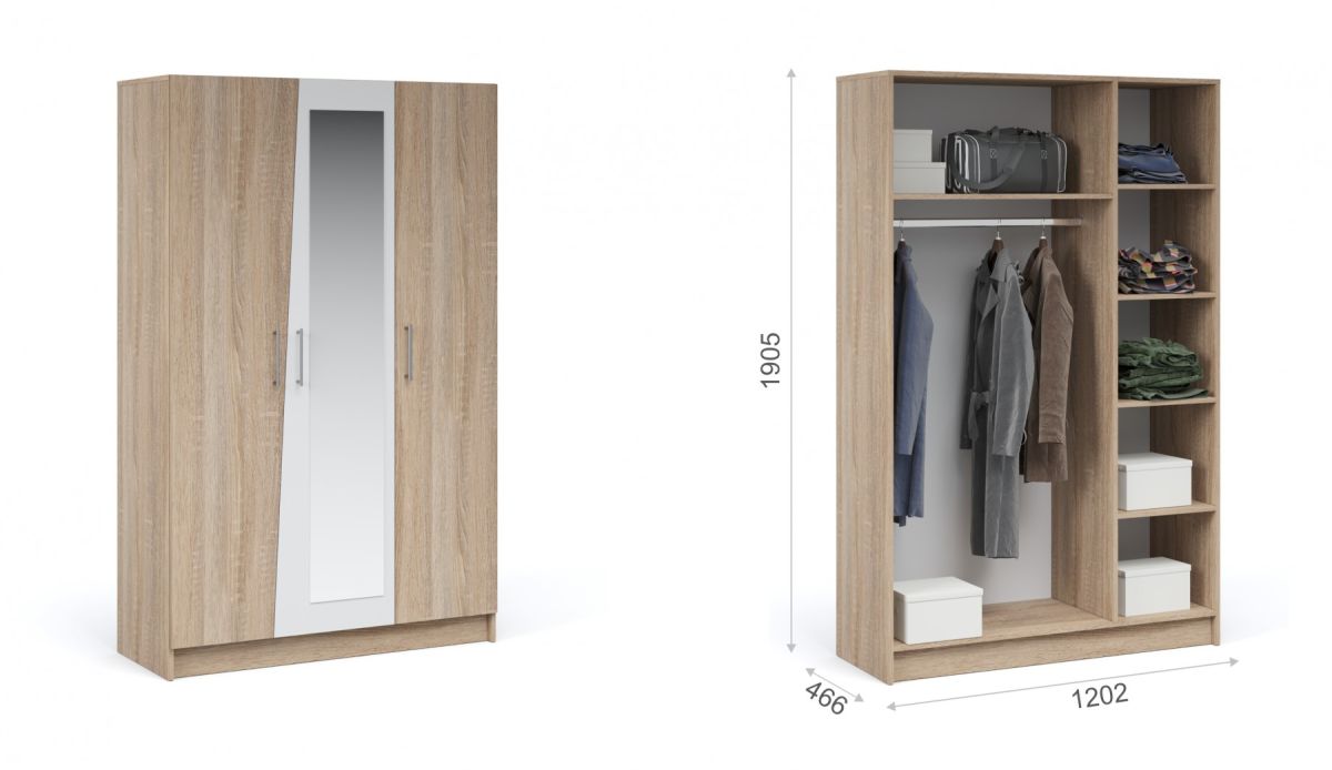 Шкаф «Антария» 3дв с зеркалом Сонома/белый