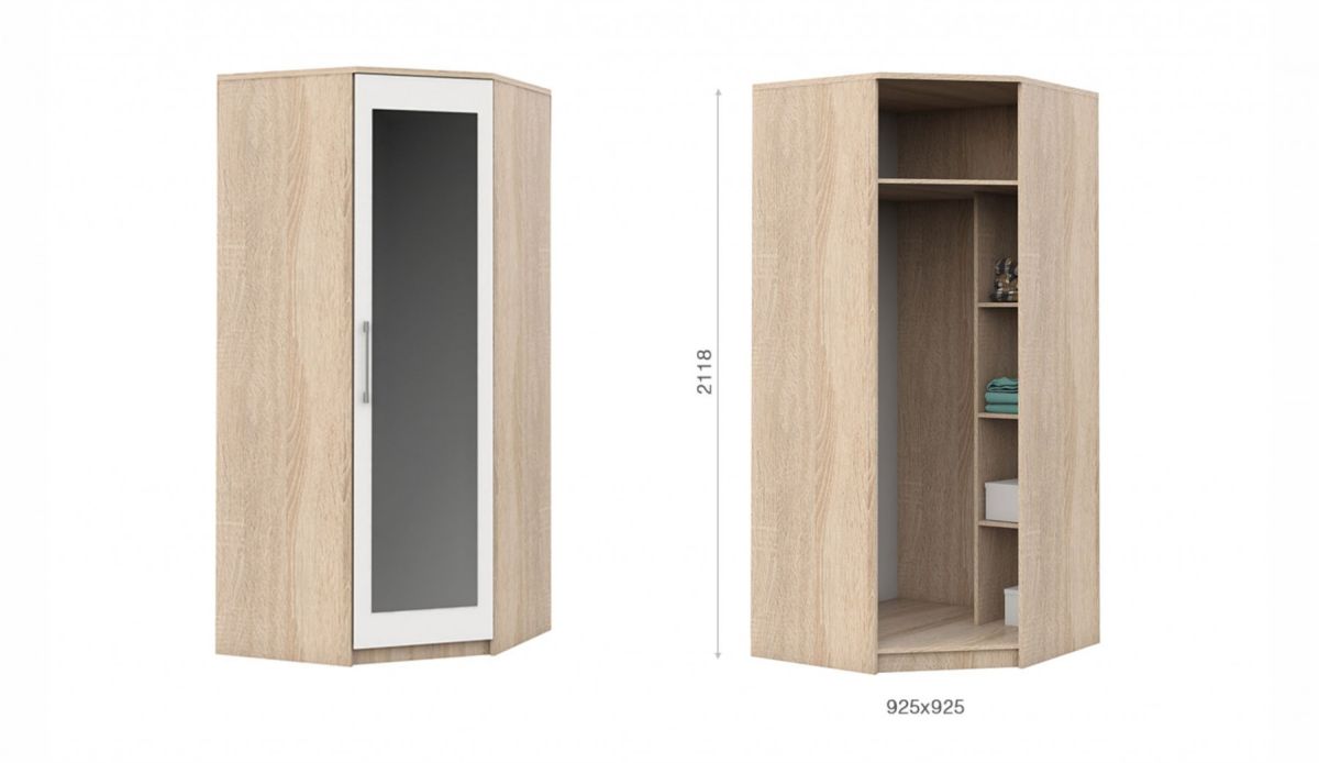 Угловой шкаф выполнен в стиле минимализм – строгие линии, идеальные пропорции, отсутствие декора. Все варианты цвета корпуса и фасадов подобраны в нейтральных сочетаниях, они универсальны для любого стиля интерьера, их можно сочетать со множеством ярких и насыщенных оттенков, а с помощью смены цветных текстиля и аксессуаров - полностью преображать пространство. Зеркало на фасаде визуально добавляет света и простора. Шкаф позволяет рационально использовать пространство и будет хорошо смотреться даже в небольшой комнате, служит связующим звеном для составления угловой системы хранения. Идеально компонуется со всеми модулями системы Аврора. Мебель выполнена из высококачественных материалов.