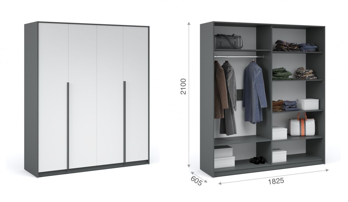 Шкаф «Мишель» 4дв Антрацит/белый жемчуг