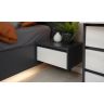 Мишель – это современная спальня с лаконичными формами и строгой геометрией в актуальных природных цветах. Оригинальная конструкция основания в сочетании со светодиодной подсветкой создают «эффект парения». Накладные светильники в комбинированном изголовье дают дополнительное освещение в ночное время, а мягкая накладка с вертикальной отстрочкой поддержит спину во время отдыха. Отсутствие лицевой фурнитуры в ящиках и комодах подчеркивают минималистичный дизайн спальни, а контрастные ручки шкафов оттеняют белизну фасадов.