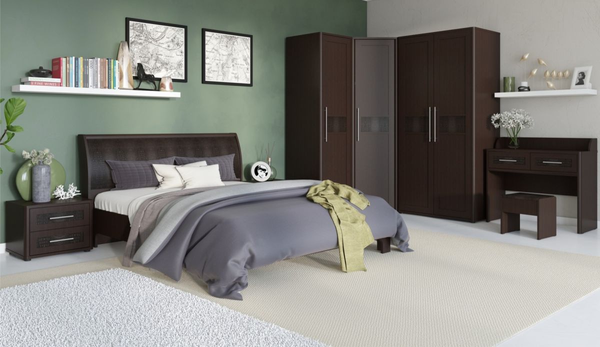 Спальня Токио идеальное сочетание лаконичности японского стиля и функциональности, необходимой для нашего климата. Темный цвет Венге, предельно простые линии, плавные, без острых углов контуры внешних очертаний, эффектные вставки из эко-кожи - все это отражение базовых смыслов фен-шуй. По фен-шуй отсутствие острых углов исключает скопление негативной энергии, направленной на людей, что особенно важно для спальни, где мы беззащитны и проводим основное время нахождения дома. Система Токио разрабатывалась специалистами фен-шуй и в полной мере учитывает все базовые принципы, создавая своими формами гармоничное пространство в комнате, а кожа крокодила, как известно, притягивает деньги. Несмотря на то, что японский стиль ассоциируется с минимализмом Токио - это полноценная и объемная система хранения, а широкий выбор модулей позволяет организовать хранение под любые нужды.