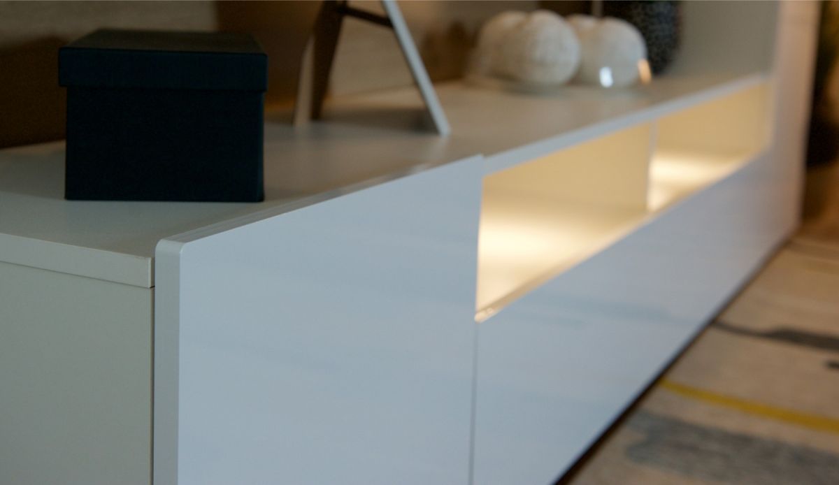 Современный стиль: белый глянец и скругленные фасады делают стенку модным элементом интерьера.
