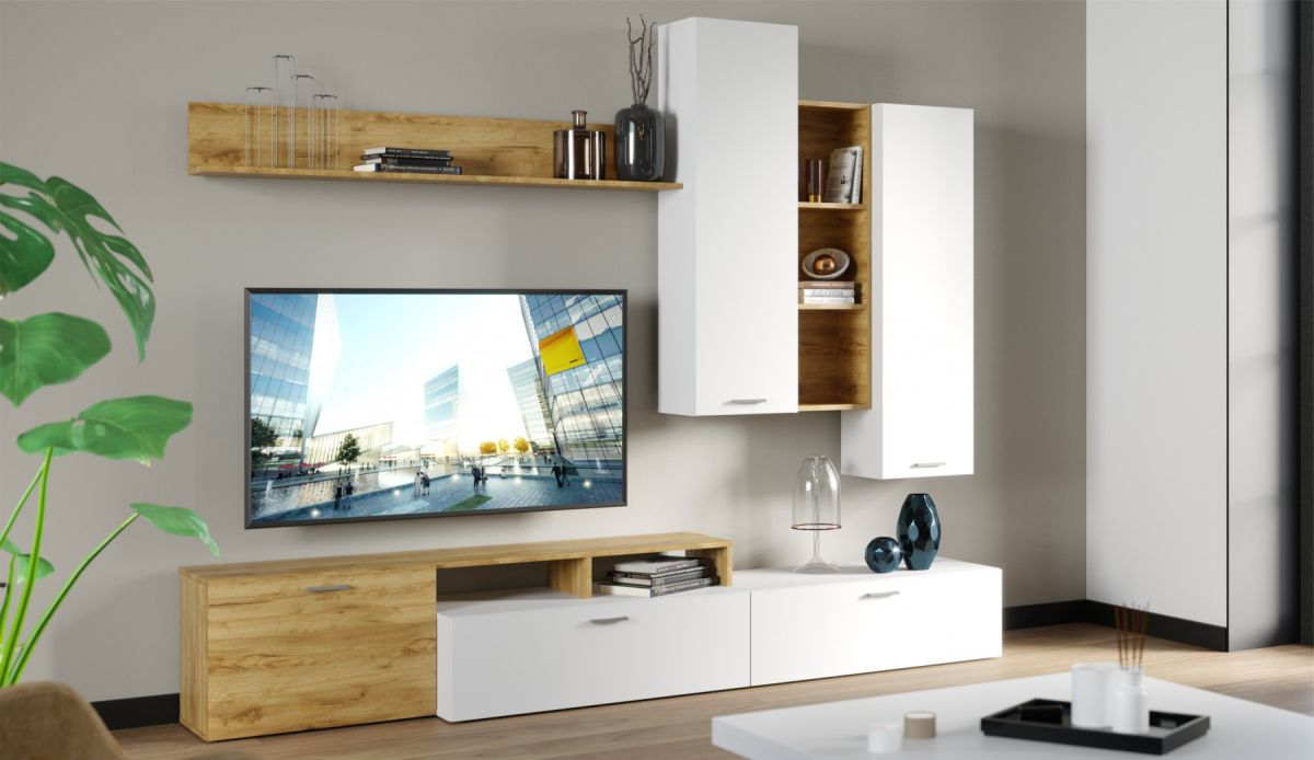 Стенка «Невио-1» Дуб крафт золотой/белый