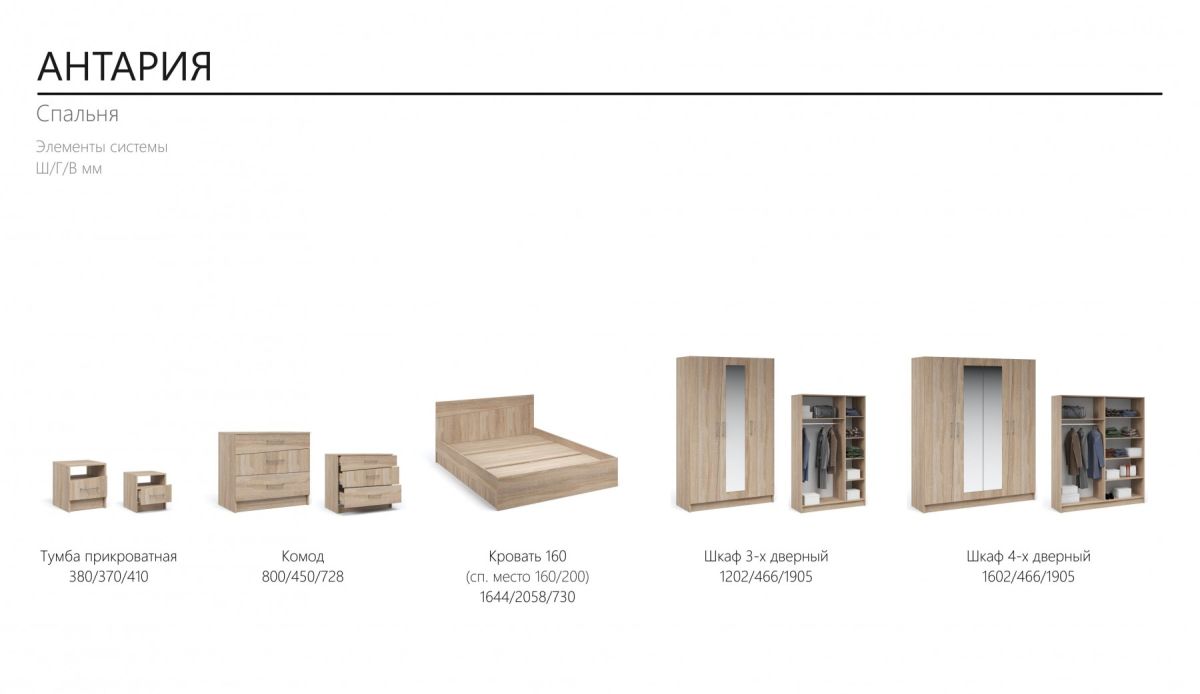 Тумба прикроватная «Антария» (2шт) Сонома