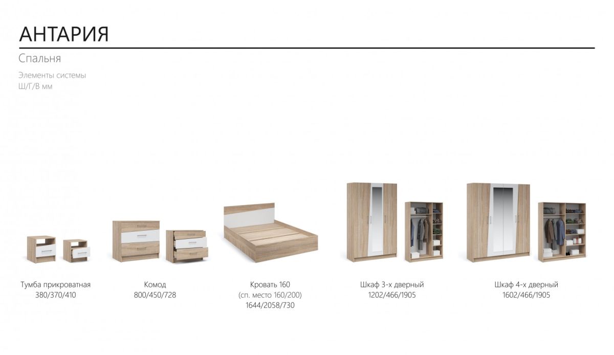 Тумба прикроватная «Антария» (2шт) Сонома/белый