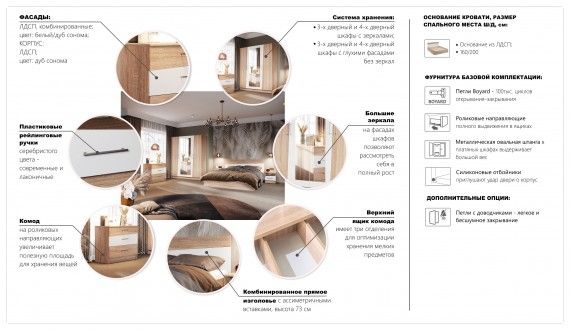 Прикроватные тумбы из ЛДСП с асимметричными скошенными линиями фасадов вносят свободу и движение в жилое пространство, делают интерьер более сложным и необычным. Нейтральные цвета декора универсальны для любого стиля интерьера. Прикроватные тумбы с ящиком на роликовых направляющих поместят в себя все вещи, которые важно иметь под рукой - телефон, любимая книга, стакан воды.