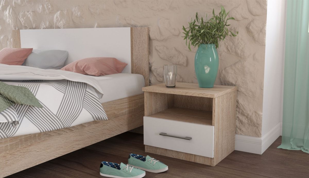 Тумба прикроватная «Аврора» (комплект 2шт.) Сонома/белый