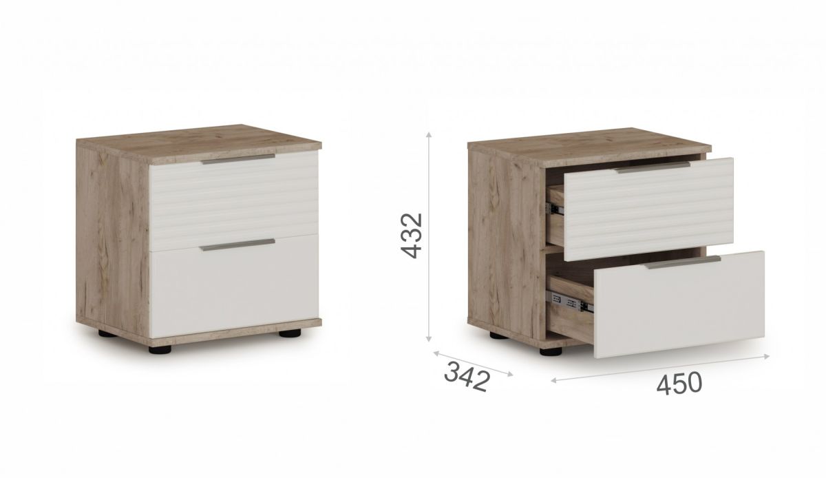 Тумба прикроватная «Джулия» 2ящ. 1 шт. Крафт серый/белый глянец